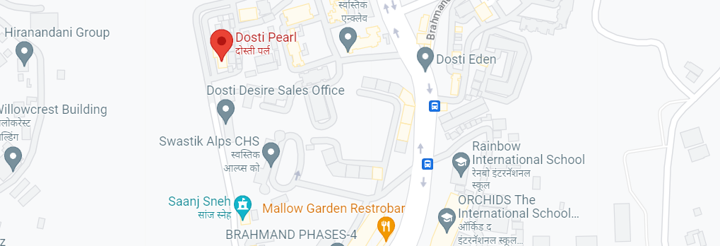 Address: Dosti Pearl, Dosti Desire, Off, Ghodbunder Rd, near Orchid International School, Brahmand, Thane West, 400607
